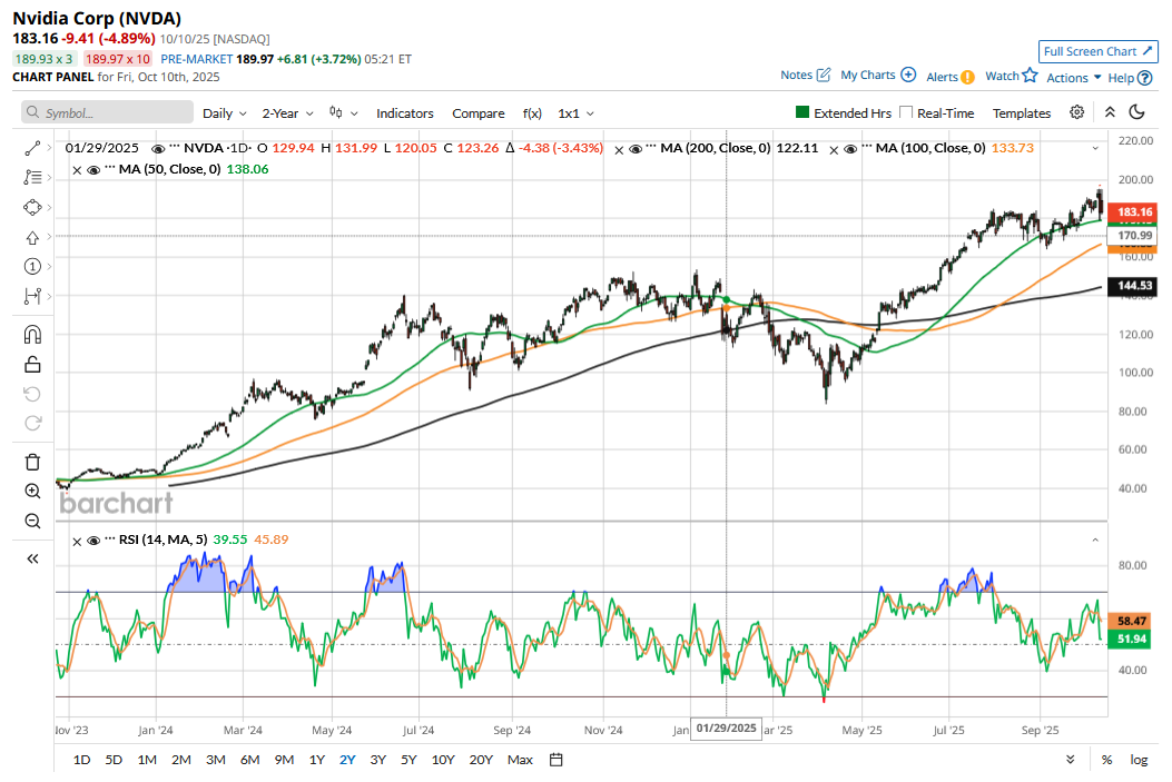 How Is Nvidia Protecting Its Turf in the AI Chip Market?Meanwhile, Nvidia is also working to protect its turf in the AI chip market. First and foremost, it is doing what it has been doing nearly seamlessly for years, and is innovating to stay ahead of the competition. Last month, it unveiled the Vera Rubin NVL144 CPX platform, which will be a successor to the current Blackwell GPU. By staying a generation ahead of competition, Nvidia ensures that the demand for its chips stays red hot while enabling it to charge a premium price. Secondly, the company has made strategic investments and announced an investment of up to $100 billion in OpenAI, $2 billion into Elon Musk’s xAI, and committed to invest 2 billion British pounds in AI startups in the U.K. While these investments have raised concerns over Nvidia basically buying revenue by investing in AI companies, since much of this money will flow back into its coffers as these companies buy Nvidia chips, it is a clever way of not only ensuring a continued revenue stream, but also gain from rising valuations of AI companies. Can Nvidia Be a $300 Stock?Last week, Cantor Fitzgerald analyst C.J. Muse raised Nvidia’s target price from $240 to a Street-high of $300. That target, which is significantly higher than the $218.53 that the average sell-side analyst believes Nvidia is worth, implies a market cap in excess of $7 trillion. While that valuation might seem astronomical, it’s a word that Nvidia investors have become used to, especially over the last 2.5 years. ![]() All said, I believe the rally in Nvidia can continue, given the near unsatiable demand for AI chips, which continues to grow, and according to Huang, computing demand has risen “substantially” this year. The AI infrastructure story is far from over, and Alibaba CEO Eddie Wu predicts that global investment in AI will reach $4 trillion over the next five years. On a similar note, Huang sees global AI infrastructure spending rising to between $3 trillion and $4 trillion by the end of this decade. To sum it up, given the expected growth in AI infrastructure, there is a place for more companies in the AI GPU space. I remain bullish on Nvidia and have no intention of selling my shares despite the breathtaking rally, as the AI revolution looks set to continue for the time being, despite bubble fears. On the date of publication, Mohit Oberoi had a position in: NVDA , BABA , META , MSFT , AMZN , GOOG . All information and data in this article is solely for informational purposes. For more information please view the Barchart Disclosure Policy here. |