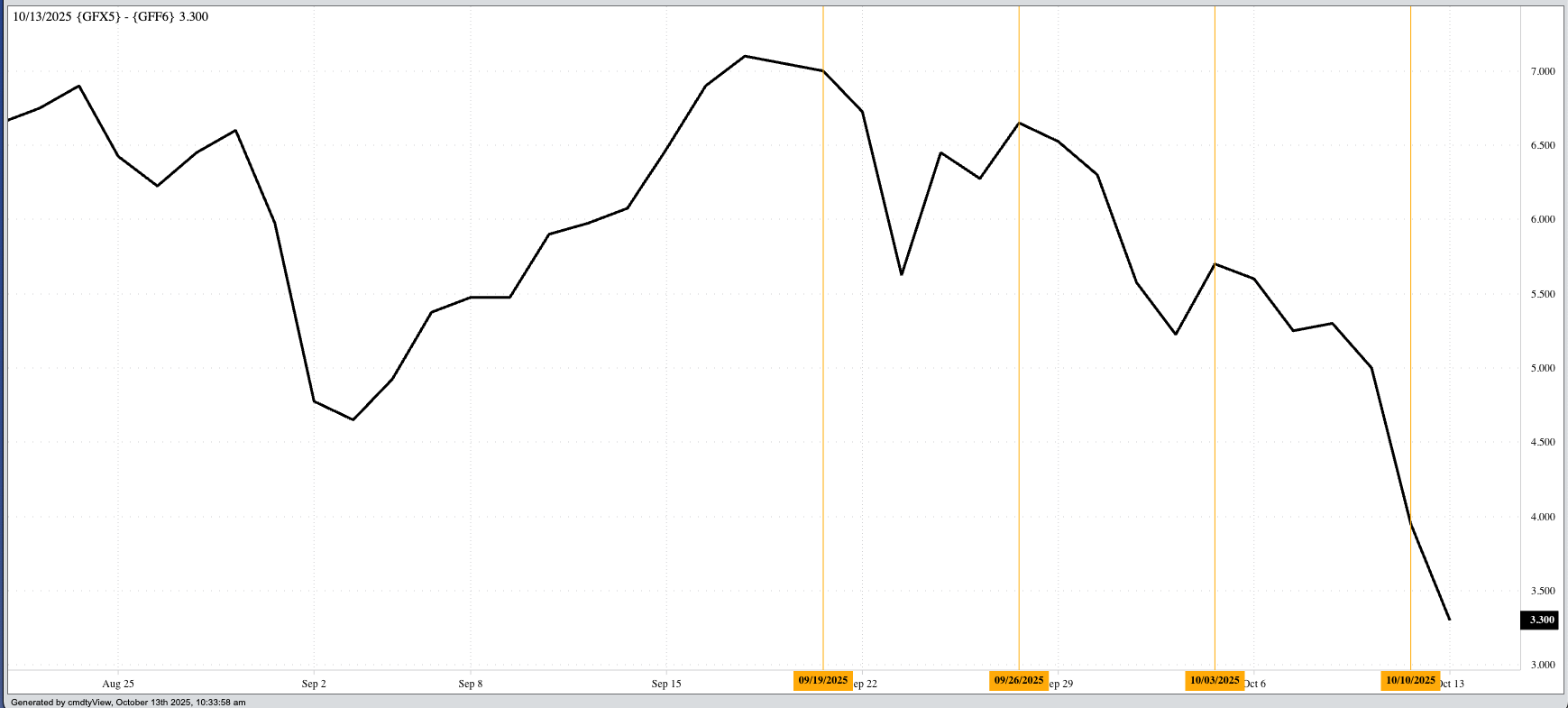 ![]() Before the Barn doors were opened Monday morning – meaning the opening bell sounding for the Livestock sector – a friend in the cattle industry sent me a message that turned into the theme of today’s discussion, “Forward curve absolutely getting destroyed on this rally in feeder cattle futures.” This is an interesting subject, and gives us something to talk about while waiting for the next social media missive (misinformation?) from - well, you know. ![]() Let’s start with a definition: A forward curve is a graph showing the price relationship between futures contracts. For storable commodities, there is a natural tendency for deferred contracts to be higher priced than nearby due to storage and interest costs. This is called carry or contango, the former if you trade Grains in Chicago (Minneapolis, Winnipeg, etc.), the latter if your interests lean more toward the New York markets. The stronger the carry/contango, the more bearish the outlook for a market’s real supply and demand situation. When it comes to grains, we can then evaluate how bearish the carry is by comparing it to calculated full commercial carry, but that’s a discussion for another day. ![]() The flip side of the forward curve coin is when deferred contracts are priced lower than nearby issue. This price relationship is called an inverse or backwardation and reflects the situation where merchandisers/end-users are pushing the nearby futures price in relation to deferred to source supplies to fill demand. Again, the stronger the inverse/backwardation the more bullish a market’s fundamentals. The Softs sector has seen one backwardated forward curve after another, the latest being coffee and cocoa. Given Softs, along with Grains, are weather derivatives at heart, and demand markets are few and far between, an inverse/backwardation usually reflects adverse weather reducing supplies. But what about non-storable commodities, like those found in the Livestock sector? Yes, I know we have, or at least had, monthly Cold Storage reports indicating stocks of beef, pork, poultry, dairy, etc., but actual, physical cattle and hogs can’t be stored indefinitely. At some point they simply die. Given this non-storable aspect of the three major markets in the sector – live cattle, feeder cattle, and lean hogs – can we read anything into the forward curves of these markets? I would say no. If we want to understand what the spreads are telling us about supply and demand, I take the current[i] spread (e.g. November 2025-January 2026 feeder cattle) and compare it to what we’ve seen the past five years. ![]() For example, based on weekly closes only, the Nov25-Jan26 spread posted a high weekly close of $7.10 from the second week of August. The previous 5-year high weekly close for that same week was $2.60, with the previous 5-year low coming in at (-$0.50). Fast forward to this past Friday (October 10) and the spread closed at $3.95, dropping $3.15 over the course of 8 weeks but still bullish compared to last week’s previous 5-year high weekly close of $1.525. The bottom line is short-term fundamentals of the feeder cattle market remain bullish. Can livestock spreads be sharply negative (nearby lower priced than deferred) and still be bullish? Conversely, can livestock spreads show a strong positive price (nearby higher than deferred) and still be bearish? The answer to both is yes. This past summer, the August-October lean hog spread posted a weekly close of $18.10. That sounds bullish, correct? However, it’s previous 5-year low weekly close for that same week was $18.175 meaning fundamentals were actually more bearish than they had been since 2020. On the other hand, the Feb-April live cattle spread recently posted a weekly close of (-$0.875), still a bullish read on longer-term supply and demand given the previous 5-year high weekly close for that week was (-$0.80). The key is not whether a spread is positive or negative (inverted/backwardated or carry/contango) but whether the underlying commodity is storable or non-storable. Given this, the answer to the question, “What is the feeder cattle forward curve showing us?”, is not much. Instead, futures spreads individually continue to indicate a bullish supply and demand situation. Just not as bullish as before. [i] My apologies Tony D. On the date of publication, Darin Newsom did not have (either directly or indirectly) positions in any of the securities mentioned in this article. All information and data in this article is solely for informational purposes. For more information please view the Barchart Disclosure Policy here. |